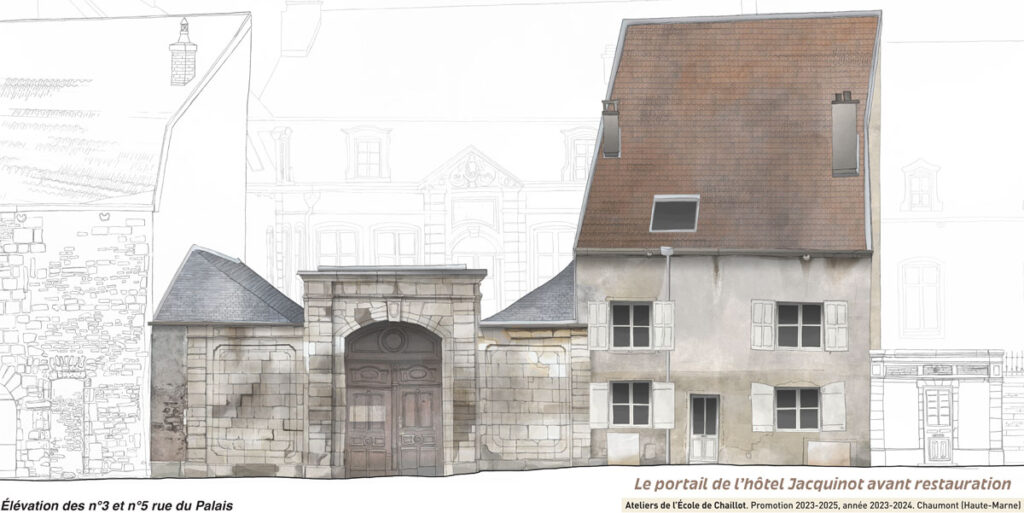 Les travaux engagés à l’entrée de la rue du Palais visent à restaurer l’imposant portail de l’Hôtel Jacquinot, élément architectural typique du centre historique. Cette opération engagée par la ville de Chaumont participe à la mise en valeur du Vieux Chaumont en contribuant à la campagne de ravalement des façades initiée depuis quelques mois.